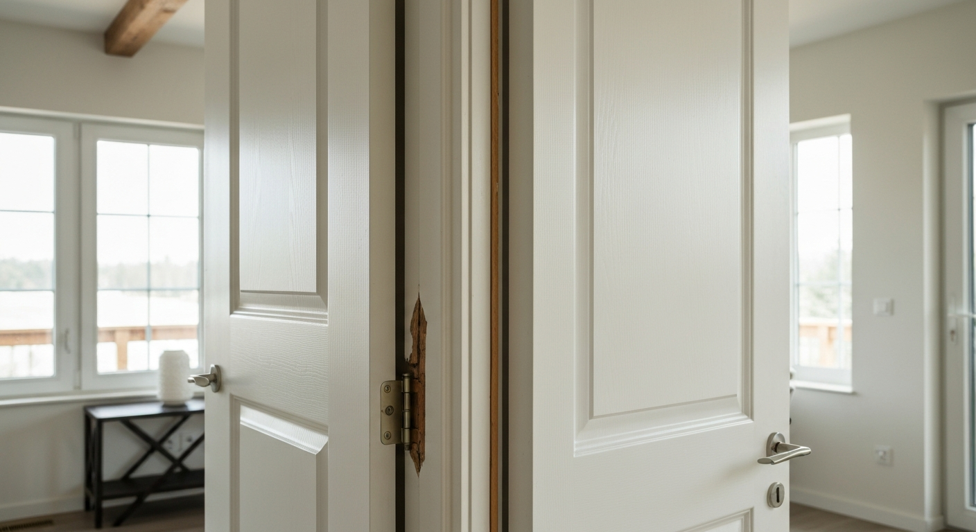 The temperature differential between indoor and outdoor environments during Saskatchewan winters creates additional stress. When it's -30°C outside and +20°C inside, the temperature gradient across a door or window frame can cause different parts of the wood to expand or contract at different rates. This differential movement is why you'll often see binding at specific points — typically the top corner on the latch side or along the bottom edge where the door sweep meets the threshold.