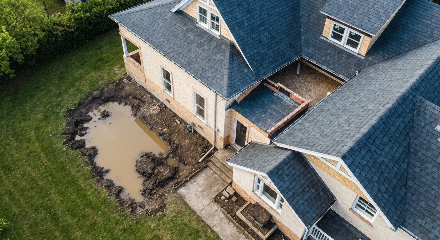 Drainage and grading problems and foundation problems are directly connected. Water that pools against a foundation exerts hydrostatic pressure on basement walls — the primary cause of horizontal foundation cracks and basement water infiltration. Over years, even low-level chronic moisture exposure can: